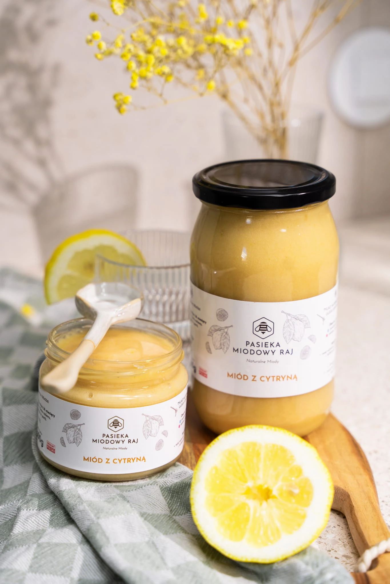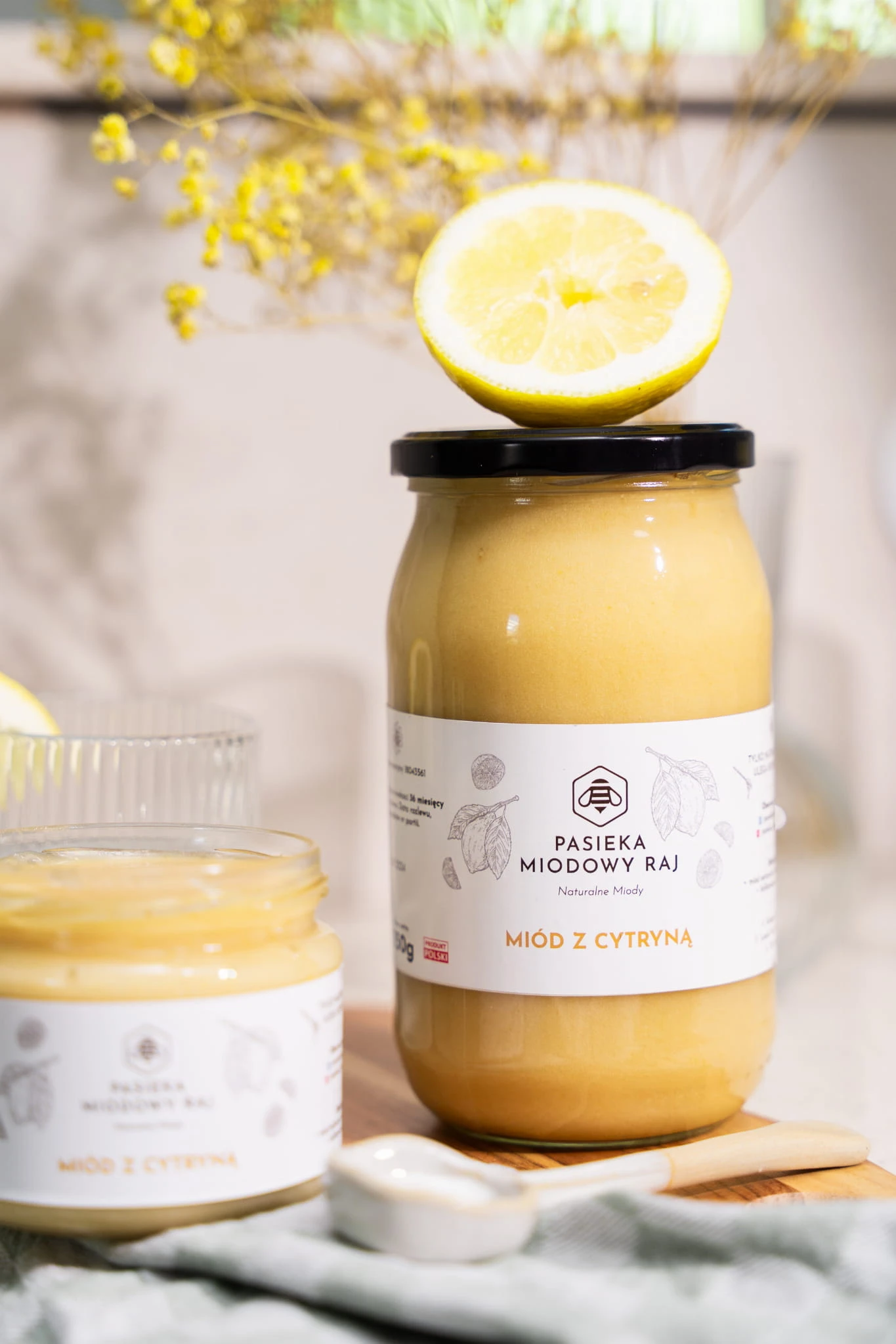 Z pewnością jesteście ciekawi jak powstaje miód z cytryną. Pozyskany przez nasze pszczoły miód wielokwiatowy wykorzystaliśmy jako bazę, a szukając naturalnego orzeźwienia nie mogliśmy pominąć owocu winnej cytryny. A wiecie, dlaczego wybraliśmy te liofilizowane? To proste - liofilizacja polega na odparowaniu wody z zamrożonych owoców i pozwala na zachowanie cennych wartości z natury! Cytryny są znane przede wszystkim z dużej zawartości witaminy C, jednakże warto wiedzieć, iż te owoce są bogate także w błonnik oraz inne korzystne związki roślinne. Cytryny mogą wspierać zdrowie naszego serca, kontrolę wagi i układ trawienny. Nie dodaliśmy nic więcej, bo doceniamy to, czym natura sama nas częstuje, a tym razem chcieliśmy wydobyć mocno kwaskowy, winny i orzeźwiający smak cytryny! Słoiczki pełne miodu z naszej pasieki nie zawierają żadnych innych dodatków czy polepszaczy. To połączenie prawdziwie pobudza zmysły i jest ciekawą alternatywą dla tradycyjnych miodów.