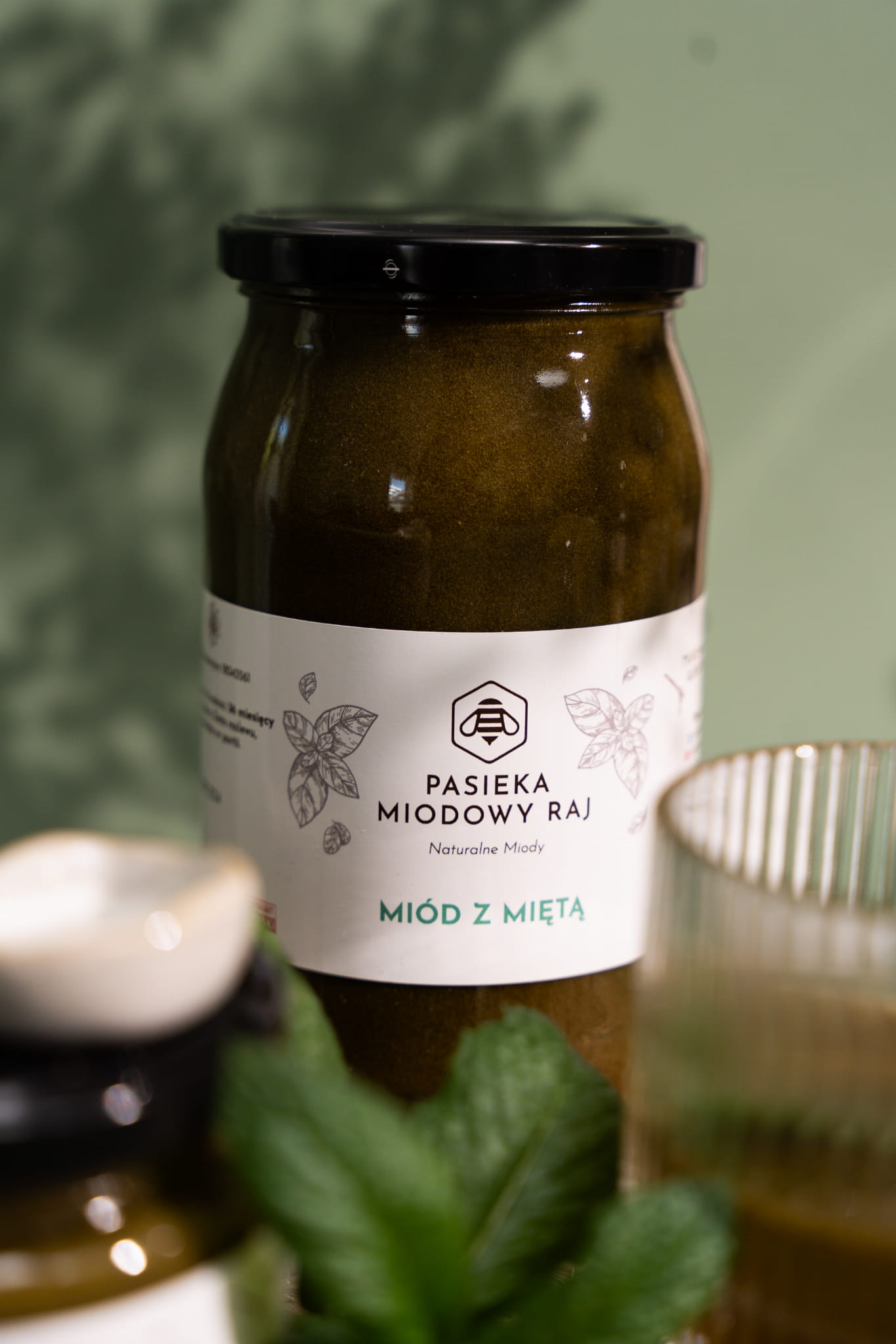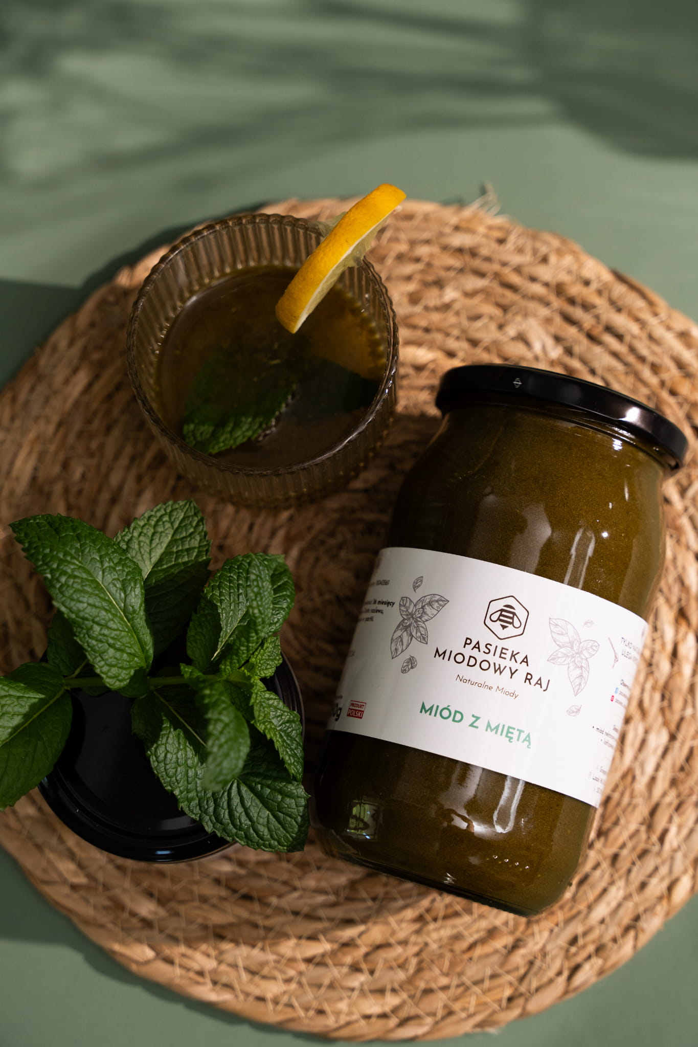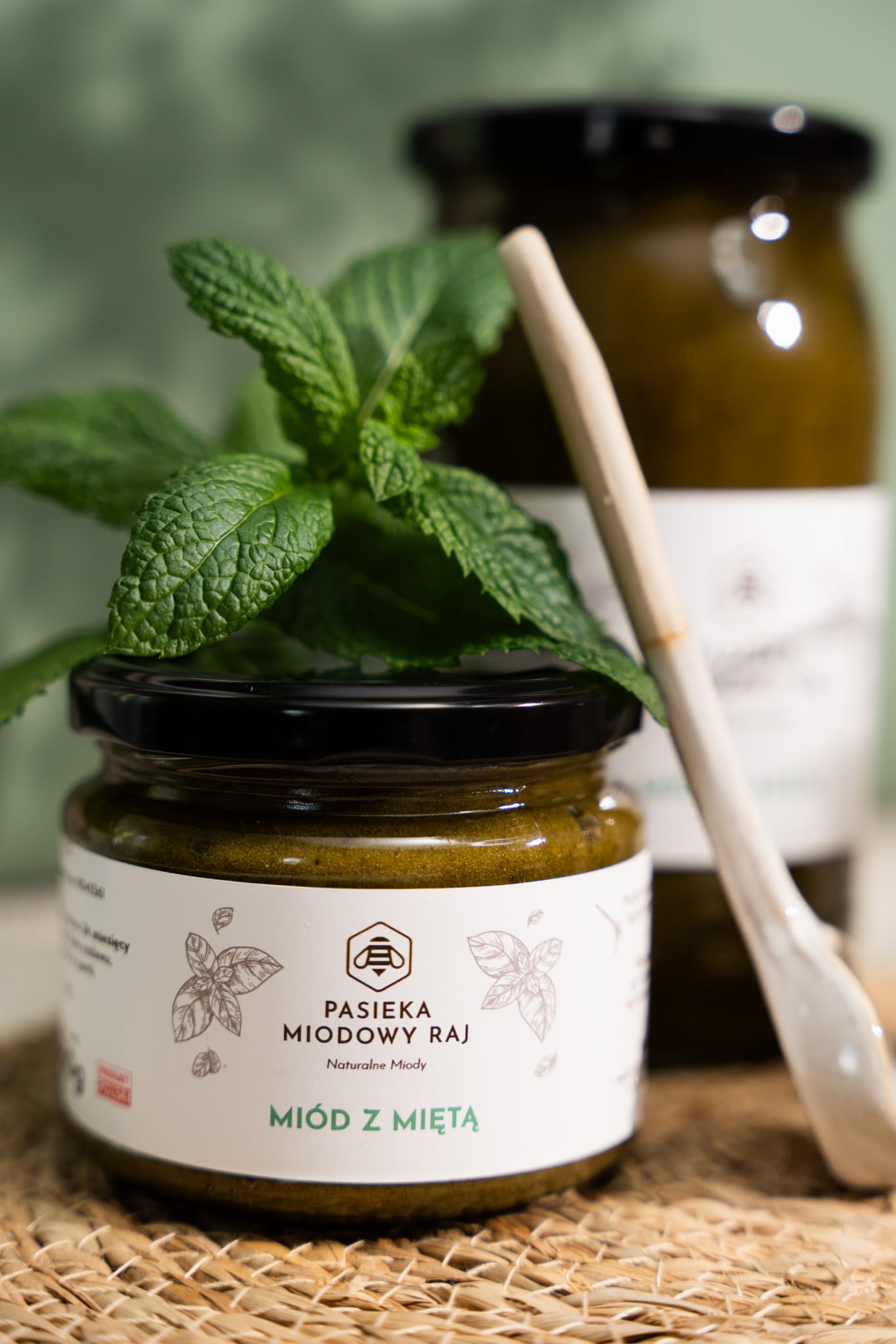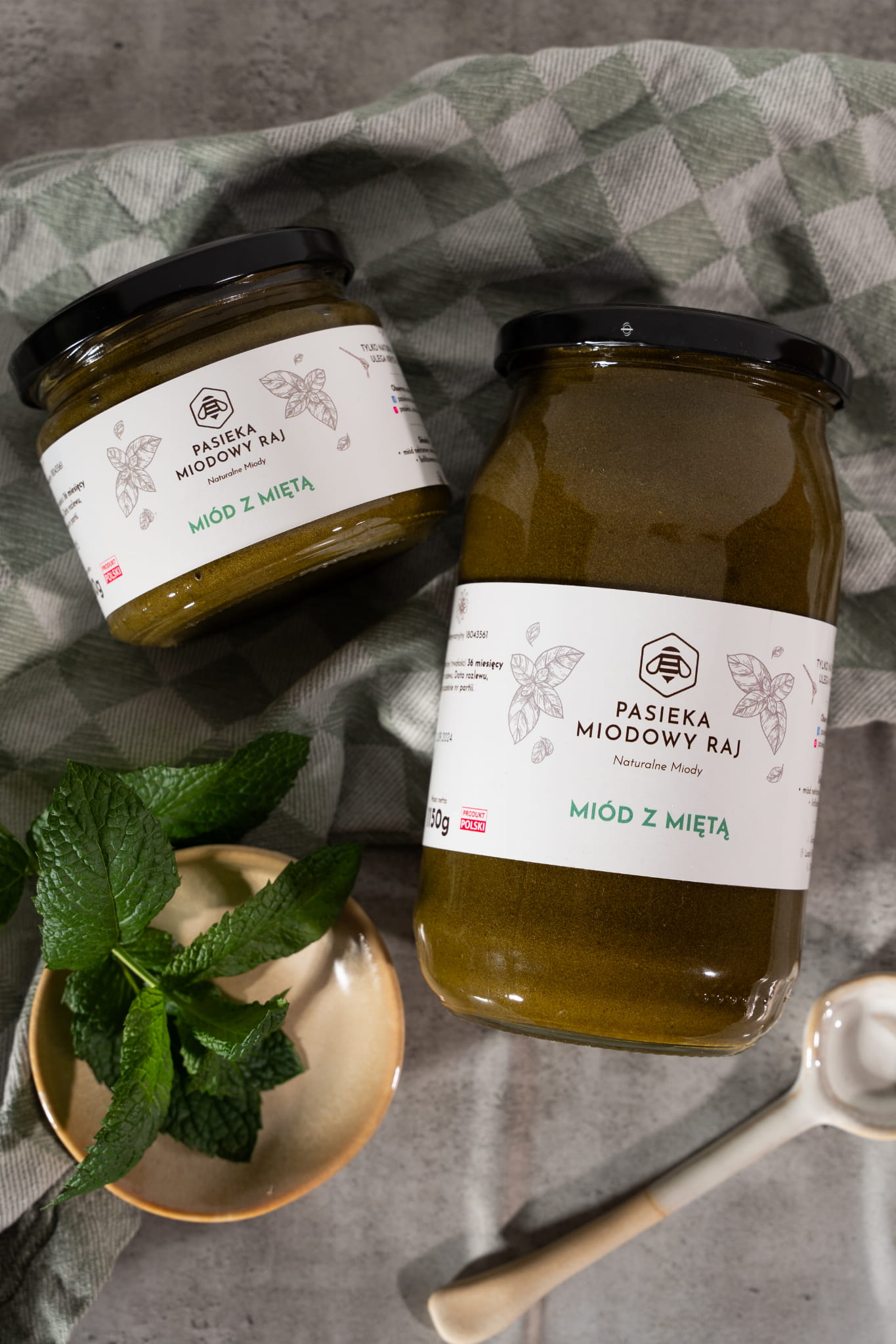 Najbardziej letni z miodów - Miód z miętą. Dla tych, co uwielbiają smak mięty stworzyliśmy limitowany smak miodu na lato! A jak się okazuje miód z miętą cieszy się szerokim zainteresowaniem nie tylko w sezonie letnim. Nowe połączenie to takie letnie popołudnie, w miodzie, pachnące rześką, aromatyczną miętą. Nasz najlepszy miód wielokwiatowy połączyliśmy z liofilizowaną miętą. Idealny duet smakowy do lemoniady, czy drinków!