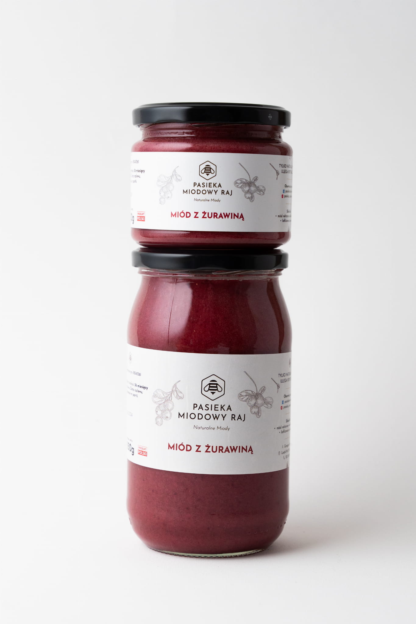 Owoce Żurawiny zawierają wiele właściwości prozdrowotnych. Są źródłem witamin i minerałów: witaminy C, manganu, witaminy E oraz witaminy K1. Żurawina to bogactwo przeciwutleniaczy, które mogą być korzystne dla zdrowia naszego serca. Co więcej, te owoce skutecznie zapobiegają infekcjom dróg moczowych i wrzodom. Liofilizowana żurawina w duecie z naszym miodem wielokwiatowym znajdzie zastosowanie jako dodatek do deserów, herbat, a nawet mięs. Bez konserwantów i sztucznych aromatów – tylko natura zamknięta w słoiku.
